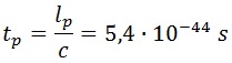 Otras magnitudes obtenibles a partir de esta idea son el tiempo de Planck que le lleva a la luz recorrer dicha distancia: