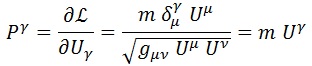 El cuadrimomento de nuestra partícula P puede introducirse perfectamente acorde al modelo lagrangiano: