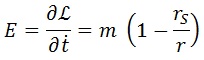 Por último, hay que hacer un comentario sobre la energía de la partícula. Según la ecuación recién expuesta, en el caso en el que la partícula estuviese quieta (tiempo del observador igual a tiempo propio), la energía que vería un observador desde el infinito sería:
