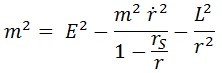 Si en esta ecuación consiguiésemos que la única variable temporal fuese la velocidad tendríamos una buena forma de describir trayectorias integrándola. Esto es posible usando conclusiones extraídas de Euler-Lagrange sin llegar a resolver la ecuación de la geodésica. Dado que el cuadrimomento se conserva, podemos obtener expresiones para la energía E y el momento angular L, que serán constantes del sistema: