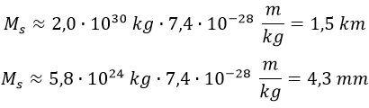 Esto significa que para que pudiesen invertir el espacio-tiempo, en su caso, sus masas tendrían que estar concentradas en esferas de 3 km y 1 cm de radio respectivamente.