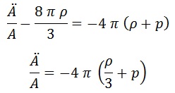 No obstante, la forma habitual de expresarla es es despejando de ella (teniendo en cuenta la 1ª ecuación de Friedmann y la expresión de la derivada temporal de H) la aceleración del factor de escala A: