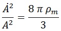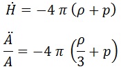 Aquí H era el parámetro de Hubble, definido en la ecuación de abajo, ρ la densidad de energía en el universo, A el factor de escala del mismo y el punto sobre cualquier parámetro representa una derivada temporal.