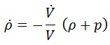 Esta es la ecuación de evolución temporal de la densidad de energía. Si ρ aumenta, su derivada tendrá que ser positiva, lo que fuerza a que H sea negativo: la densidad de energía aumenta en universos contrayéndose y disminuye en universos expandiéndose, como era de esperar.