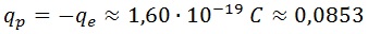 Sabiendo esto, podemos reescribir la carga del protón (opuesta a la del electrón) como: