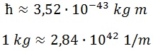 Y la equivalencia inversa entre quilogramos y metros debida a la constante de Planck: