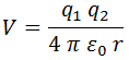 Aquí ε0 representa la permitividad del vacío. Básicamente esto implica que la energía tiende a cero cuando la distancia es infinita (cargas libres) y que la interacción será repulsiva si ambas tienen el mismo signo mientras que por el contrario será atractiva si tienen signo opuesto.