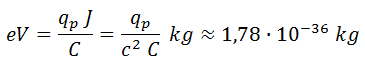 Antes de dar un valor numérico a la masa es importante recordar la correspondencia natural entre electronvoltios (eV), julios (J) y quilogramos: