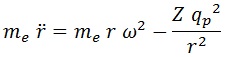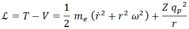Aquí me es la masa del electrón y Z el número de protones en el núcleo (todos contribuyen a la carga). El punto sobre la r representa una derivada temporal. El movimiento queda determinado por las ecuaciones de Euler-Lagrange: