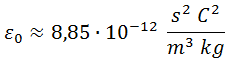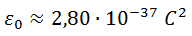 La expresión anterior tiene en el denominador 3 términos de nulo interés físico, por lo que del mismo modo que omitimos previamente la velocidad de la luz y la constante de Planck para crear el sistema de unidades natural, en esta ocasión nos cargaremos la permitividad. Para ello, en primer lugar tomamos su valor según el sistema internacional: