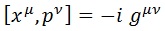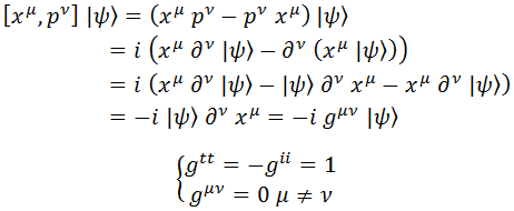 En el último paso hemos reintroducido la métrica g, que en ausencia de campos gravitatorios toma la forma expuesta, donde las i denotan cualquier índice espacial. Con ella representamos la derivada de una coordenada respecto a otra. En resumen, el conmutador se expresa como: