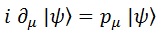 Otro ejemplo de operador sería el número imaginario por el vector de derivadas. En la entrada anterior vimos que actuando sobre el campo de Schrödinger era equivalente al cuadrimomento p. Esto significa que el campo libre de Schrödinger es un autoestado de las derivadas de espacio y tiempo y que las componentes del cuadrimomento son sus autovalores: