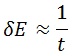 De aquí podemos deducir que como siempre existirá una incertidumbre mínima en la energía de un estado esa incertidumbre pone una cota a lo seguros que podemos estar de su principio de conservación. Si tomamos t como el tiempo más pequeño que dejamos que pase antes de medir de nuevo la energía de un sistema, podemos decir que esa es nuestra incertidumbre temporal y esto nos da más o menos (despreciando el factor 2) una resolución energética de la forma: