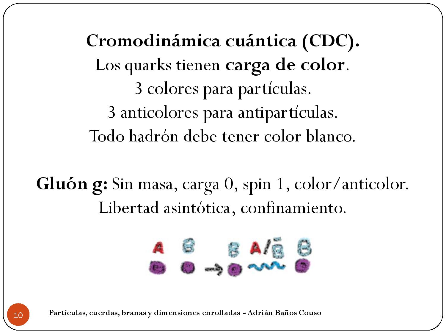 Se recurre para ello a la segunda interacción fundamental, la CromoDinámica Cuántica (CDC), que estudia el movimiento de la carga de color.