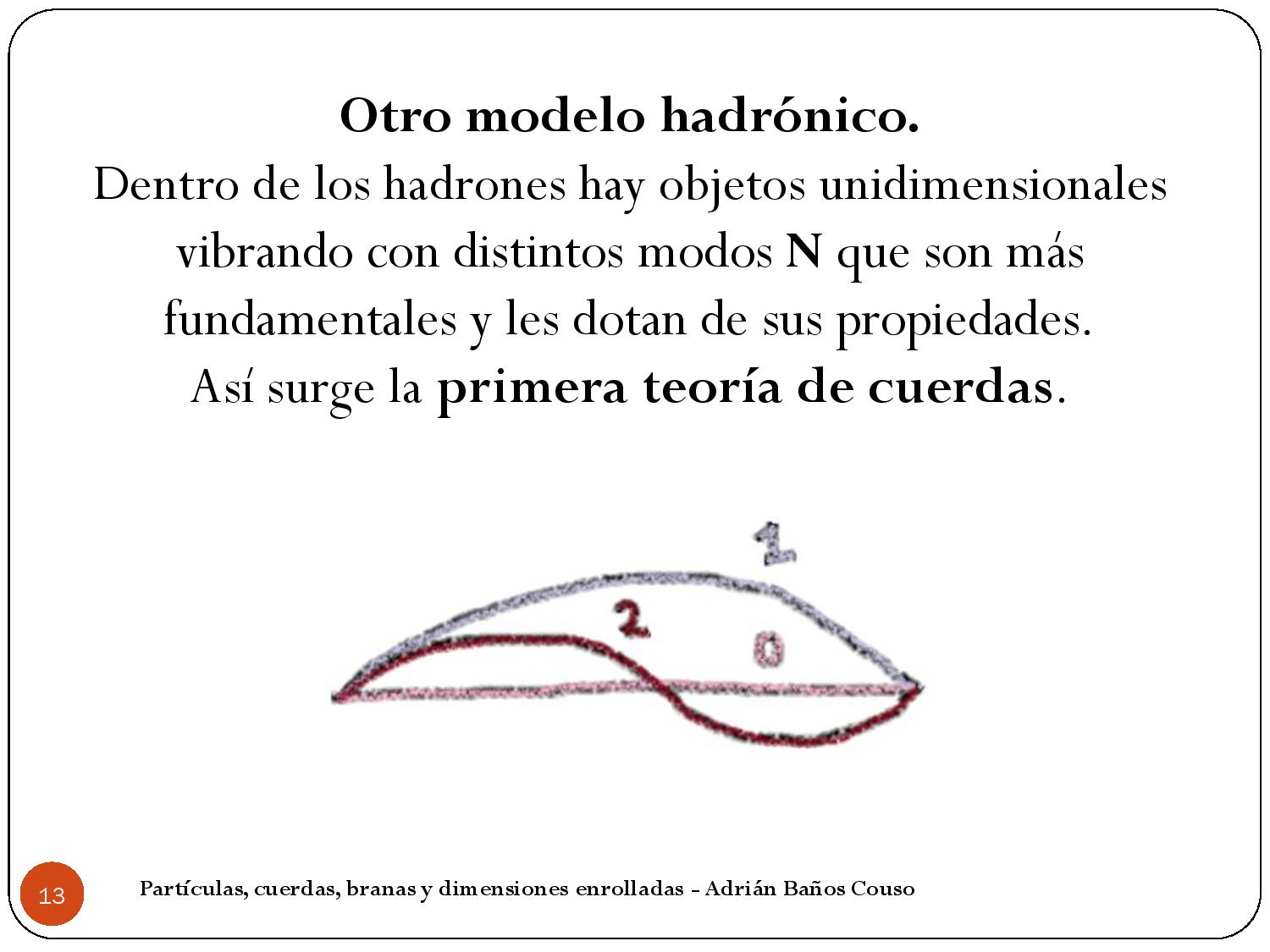 Antes del modelo de quarks, en los 60 se planteó que a lo mejor el protón contenía pequeños objetos unidimensionales (cuerdas) más fundamentales que este y que al vibrar con distintas frecuencias N aportaban la energía que faltaba.