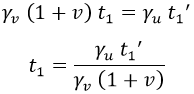 Vemos que es la misma fórmula que en el caso clásico, salvando el factor γu de dilatación de Lorentz.
