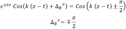 Si por el contrario fijamos i igual a y, y por tanto k igual a x, llegamos a que el desfase en x del campo magnético tiene que ser opuesto al desfase en x del campo eléctrico. Ojo con el signo menos que aparecería por el Levi-Civita: