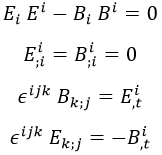 El fotón, como ya comentamos, representa una alteración de campo electromagnético en forma de onda. Y las ondas electromagnéticas, a su vez, representan oscilaciones de los campos eléctrico E y magnético B. La lagrangiana electromagnética imponía sobre dichas ondas las siguientes condiciones: