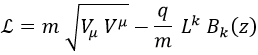 En su momento vimos que la lagrangiana de una partícula de masa m, carga q y cuadrivelocidad V sometida a un campo electromagnético A tenía la siguiente forma: