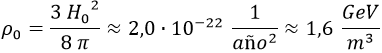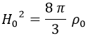 Tomemos la primera ecuación de Friedmann en el presente, que relaciona el parámetro de Hubble actual H0 con la densidad de energía del universo ρ0: