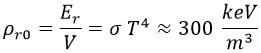 Consecuentemente, si consideramos que la radiación más importante que hay a día de hoy en todo el universo es el fondo cósmico de microondas (aunque realmente también estarían los neutrinos de la nucleosíntesis, no detectados), cuya temperatura conocemos, la densidad de energía por radiación en el universo es:
