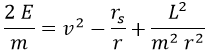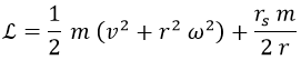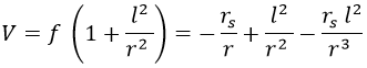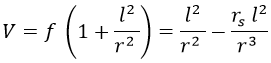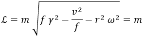 Las trayectorias clásicas de una partícula de masa m, velocidad radial v y velocidad angular ω en torno a una estrella de radio de Schwarz rs ubicada a una distancia r venían dadas por la siguiente lagrangiana:
