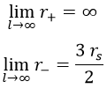 No obstante, estas consideraciones presuponen que la raíz que ha aparecido al resolver los puntos críticos es positiva. Si fuese nula, ambas órbitas circulares serían la misma, inestable, y se encontraría a una distancia de tres radios de Schwarzschild: