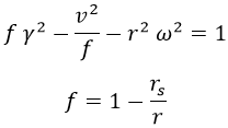 Como vimos ya en la entrada sobre la solución de Schwarzschild, el módulo de la cuadrivelocidad de cualquier cuerpo, que tendrá que valer 1, responde a la siguiente ecuación: