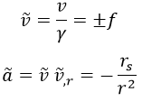 Sin embargo, solo serían así con respecto al tiempo propio. Con respecto al tiempo del observador, la luz cambiaría tanto su velocidad como su aceleración por la curvatura temporal representada mediante el factor f: