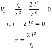 Siendo este el caso, de nuevo tenemos un potencial infinitamente atractivo en las cercanías del agujero negro. Derivando, obtenemos el siguiente punto crítico: