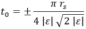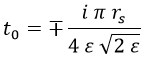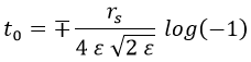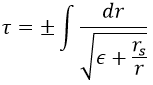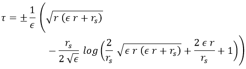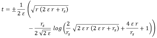 Puede comprobarse fácilmente que si r es nulo el tiempo también, aplicando que el logaritmo de 1 es 0. Así pues, el si sustituimos el alcance máximo en la ecuación vemos que el tiempo que lleva a una partícula llegar hasta él desde el centro de la estrella con energía ε es: