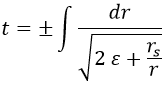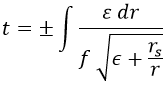 De la ecuación de la velocidad podemos despejar el tiempo t en función de la distancia r mediante la siguiente integral indefinida: