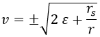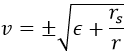 Supongamos ahora, de nuevo, que el cuerpo sale despedido desde el centro de la estrella con factor energético ∈ y sin momento angular. Su velocidad según la distancia será: