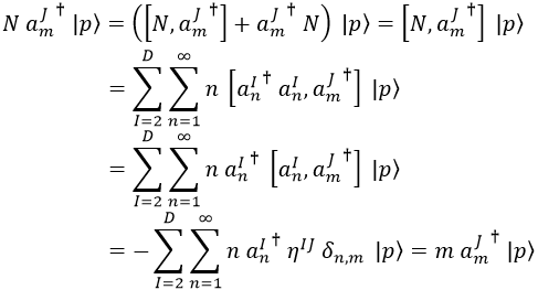 Por otra parte, lleva unas pocas líneas ver que el operador número actuando sobre el estado mJ da como resultado m por el estado. Para ello solo necesitamos aplicar las propiedades de los conmutadores y los valores que sabemos que toman. Por ejemplo, un operador de creación con otro siempre van a conmutar sin problemas, y lo mismo sucede con dos de destrucción: