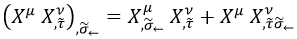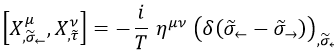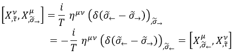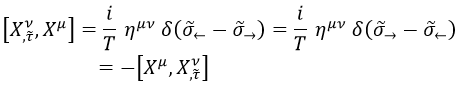 En el caso de una hoja de cuerda, donde τ parametriza el tiempo y σ la posición sobre la cuerda, podemos trasladar el conmutador cuántico fundamental usando el cuadrimomento temporal y considerando que la métrica será la de Minkowski η:
