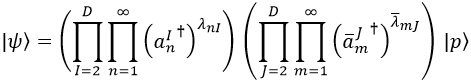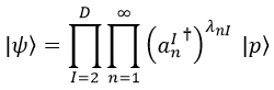 Dada una cuerda abierta con un cuadrimomento p, podemos construir su estado ψ mediante la aplicación consecutiva (multiplicación) de operadores de creación de oscilaciones en todas las direcciones I trasversales y con todas las frecuencias n posibles. Cada uno lo aplicamos λnI veces: