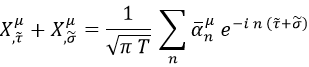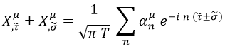 En el caso de la cuerda cerrada, la parte – de la ecuación indicada seguía siendo cierta, pero la parte + requería de otros cuadrivectores α: