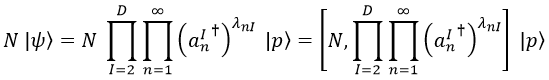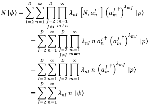 ¿Qué podemos hacer con esta barbaridad? Es bastante rebuscado de explicar, pero básicamente lo que podemos hacer es tener en cuenta que N conmutando con un producto de varias anI† elevadas a λnI es equivalente a la suma de los conmutadores de N con cada una de ellas multiplicada por su λnI respectivo y por todas las otras anI†. A partir de ahí, ya solo es cuestión de tirar para delante: