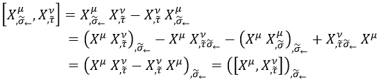 Gracias a esta relación, podemos asociar el conmutador entre la derivada natural de la cuerda y la temporal con la derivada natural del conmutador entre la cuadriposición y la derivada temporal: