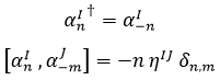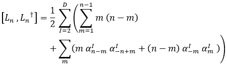 Dados todos los osciladores αnI asociados a la frecuencia n de oscilación en la dirección trasversal a la cuerda I, los operadores de Virasoro Ln se definían como: