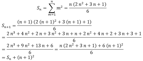 Esta fórmula es evidentemente cierta cuando n vale 1, y si para n es cierta, también lo es para n+1, con lo que queda demostrada por inducción: