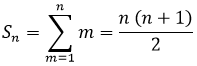 Pero aún no hemos acabado. Hay que arreglar un poco dicho sumatorio que ha quedado para que estorbe menos. La suma de los números naturales desde 1 hasta n se calcula mediante la siguiente fórmula: