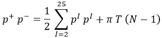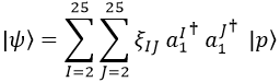 Aquí ψ denota el estado cuántico, p el cuadrimomento de la cuerda, anI los operadores de creación de vibraciones con la nota n en la dirección I y λnI cuántas vibraciones se han creado del tipo asociado. En el número de dimensiones de oscilación fijamos como máximo 25, de forma acorde a nuestros cálculos.