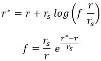 Publicado a las 200 × 121 en Diagramas espacio-tiempo de Carter-Penrose para agujeros negros: coordenadas Kruskal y extensiones analíticas máximas del agujero negro de Schwarzschild y el de Reissner-Nordström.