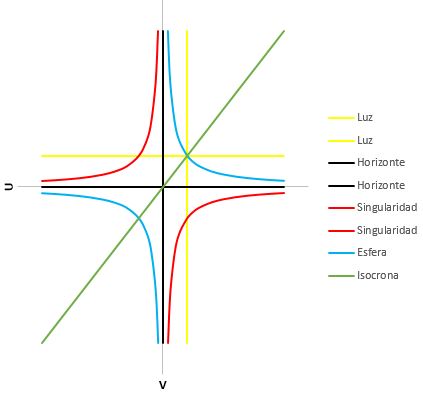 Publicado a las 423 × 394 en Diagramas espacio-tiempo de Carter-Penrose para agujeros negros: coordenadas Kruskal y extensiones analíticas máximas del agujero negro de Schwarzschild y el de Reissner-Nordström.