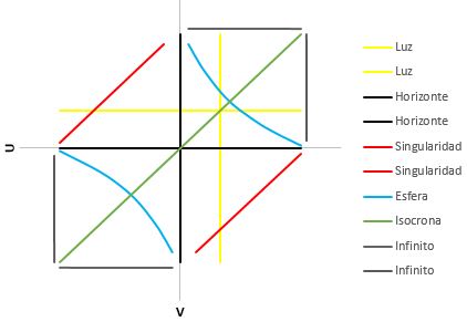 Publicado a las 422 × 291 en Diagramas espacio-tiempo de Carter-Penrose para agujeros negros: coordenadas Kruskal y extensiones analíticas máximas del agujero negro de Schwarzschild y el de Reissner-Nordström.